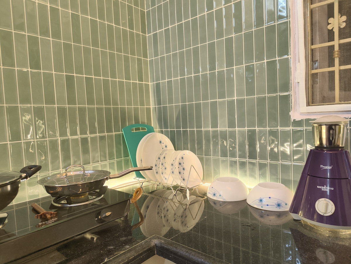 Stay in a clean, calm and fully private 1RK apartment located in a quiet green residential neighborhood near airport. Perfect for travelers looking for a comfortable and peaceful stay close to the airport.