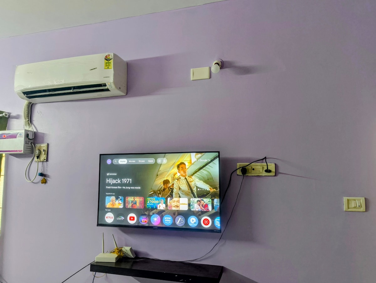The space ✨ Amenities • Kitchen with gas stove for light cooking • High-speed WiFi • 43" Google TV for entertainment • Inverter power backup for uninterrupted stay • Clean bathroom with essential toiletries