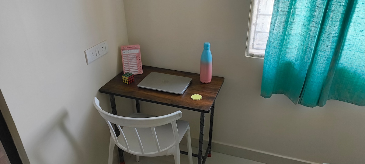🏠300sqft studio with one AC bedroom and a private kitchen .NO SHARING.🌟 Kitchen has induction stove with basic cookware.🌟 Inverter Power backup🌟SECOND FLOOR(NO LIFT)👉House is near RAVINDRA BHARATHI GLOBAL SCHOOL, PALLIKARANAI. Exact locations will be shared on booking.✈️10km from airport and Chennai trade center 🚂23km from Chennai Central🚭 No Smoking🆔 Guest ID proofs needed🏠This is a homestay NOT HOTELThe spaceThis is a Private Studio apartment. 🧘Enjoy greater privacy with entire home with private entrance all for yourself.★ The KITCHEN is private and equipped with a induction stove, kettle , basic cooking utensils, cutlery, dinnerware .Single burner gas stove is provided as a complimentary .★ AC BEDROOM has large windows (with blackout curtains), open shelf, Queen size bed and attached BATHROOMMore space at a better price.Access to the full kitchen and laundry.Proximity to short term rental✓Indian food: A2B Pallikaranai (600m)✓Continental food:Zone by the park(650m)✓Airport(10km)✓Cinema and trampoline park: Grandmall (3km)✓Phoenix Mall(6Km)✓BSR Mall(4km)✓Hospitals: Kauvery, Kamatchi (500m)✓Offices: Shell centre, Fayola Towers, Fortune Towers (500m)All food delivery services are active in this area.👚WASHING MACHINE::Washing machine is available in the laundry room and is charged at Rs 100 per wash. Free for stay>5 days.Timing 0800-1400noon (MON-SUN).Clothes can be dried on the terrace in the clothesline.Guest accessThe airbnb is in the Second floor.Guests have access to* Common Terrace* Car Park*Laundry roomOther things to noteInduction stove is provided to keep the rent nominal. If gas stove is needed,additional charge of 800 will be applied.🆔 PROOF: As per government norms we request you to produce ID proof of guests after booking is confirmed via Airbnb message. Lockbox access code will be shared only after ID verification.🚭 NO SMOKING: Smoking and partys are not permitted. PARKING: Free covered parking for car/bike inside the premises.CLEANING: Cleaning services will be provided based on request for short stays and will be charged 250rs. For stays longer than 7 days, full cleaning will be done once a week.