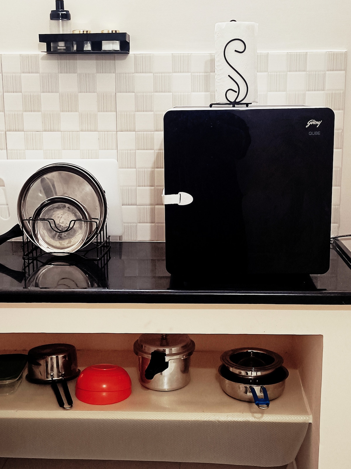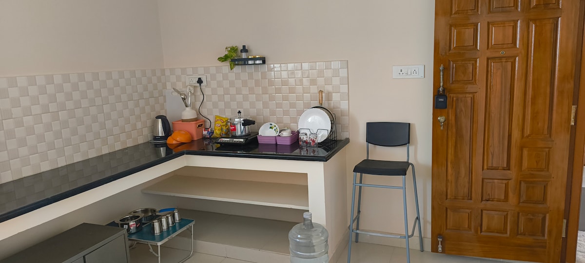 🏠300sqft studio with one AC bedroom and a private kitchen .NO SHARING.🌟 Kitchen has induction stove with basic cookware.🌟 Inverter Power backup🌟SECOND FLOOR(NO LIFT)👉House is near RAVINDRA BHARATHI GLOBAL SCHOOL, PALLIKARANAI. Exact locations will be shared on booking.✈️10km from airport and Chennai trade center 🚂23km from Chennai Central🚭 No Smoking🆔 Guest ID proofs needed🏠This is a homestay NOT HOTELThe spaceThis is a Private Studio apartment. 🧘Enjoy greater privacy with entire home with private entrance all for yourself.★ The KITCHEN is private and equipped with a induction stove, kettle , basic cooking utensils, cutlery, dinnerware .Single burner gas stove is provided as a complimentary .★ AC BEDROOM has large windows (with blackout curtains), open shelf, Queen size bed and attached BATHROOMMore space at a better price.Access to the full kitchen and laundry.Proximity to short term rental✓Indian food: A2B Pallikaranai (600m)✓Continental food:Zone by the park(650m)✓Airport(10km)✓Cinema and trampoline park: Grandmall (3km)✓Phoenix Mall(6Km)✓BSR Mall(4km)✓Hospitals: Kauvery, Kamatchi (500m)✓Offices: Shell centre, Fayola Towers, Fortune Towers (500m)All food delivery services are active in this area.👚WASHING MACHINE::Washing machine is available in the laundry room and is charged at Rs 100 per wash. Free for stay>5 days.Timing 0800-1400noon (MON-SUN).Clothes can be dried on the terrace in the clothesline.Guest accessThe airbnb is in the Second floor.Guests have access to* Common Terrace* Car Park*Laundry roomOther things to noteInduction stove is provided to keep the rent nominal. If gas stove is needed,additional charge of 800 will be applied.🆔 PROOF: As per government norms we request you to produce ID proof of guests after booking is confirmed via Airbnb message. Lockbox access code will be shared only after ID verification.🚭 NO SMOKING: Smoking and partys are not permitted. PARKING: Free covered parking for car/bike inside the premises.CLEANING: Cleaning services will be provided based on request for short stays and will be charged 250rs. For stays longer than 7 days, full cleaning will be done once a week.